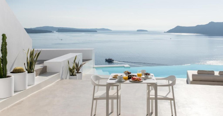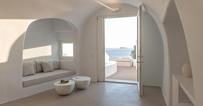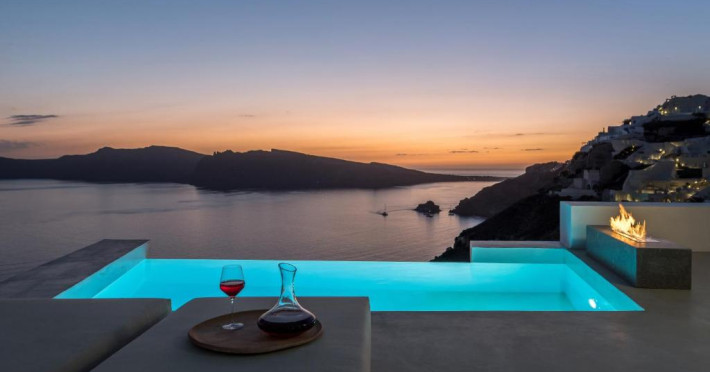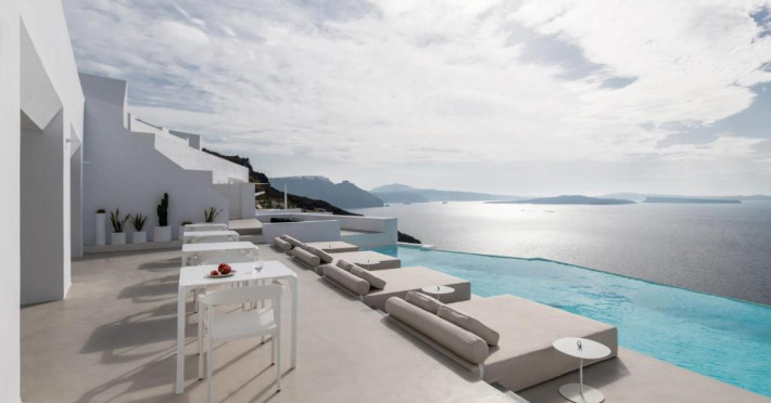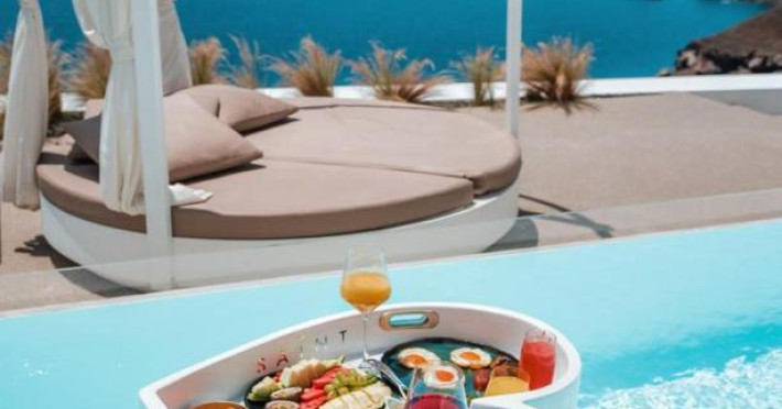 The Saint Hotel se află in Oia, la 2,2 km de Plaja Katharos, și oferă cazare de 5 stele, o piscină in aer liber sezonieră, un centru de fitness și un bar. Această proprietate include un serviciu de concierge, precum și un restaurant. Proprietatea pune la dispoziție o recepție deschisă non-stop, servicii de transport de la/la aeroport, room-service și WiFi gratuit in intreaga proprietate.