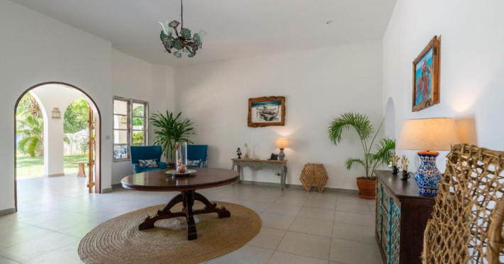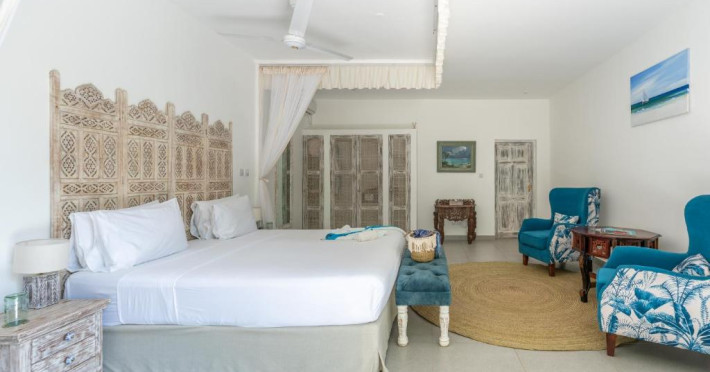 Camerele spațioase sunt decorate in stil swahili și oferă vedere spre grădina tropicală sau spre Oceanul Indian. Resortul dispune de piscină infinity cu vedere panoramică spre ocean, restaurant cu specific internațional și local, bar pe plajă și centru spa cu tratamente tradiționale africane.