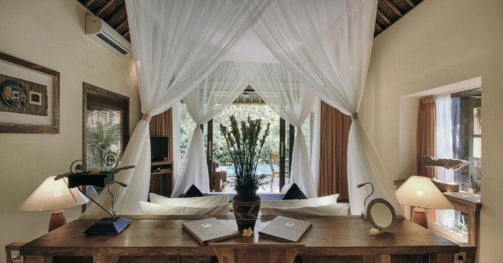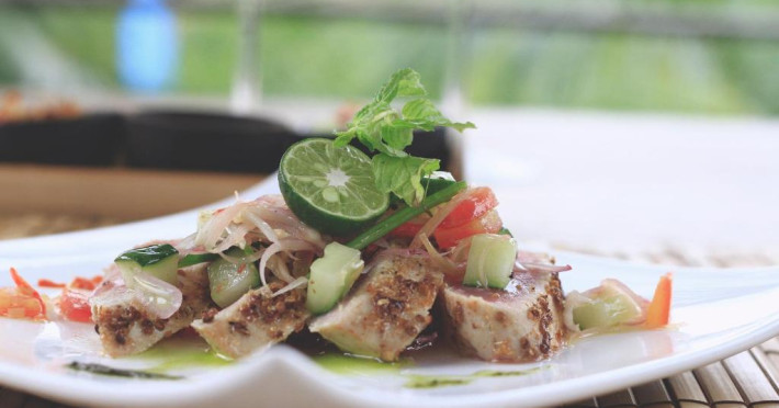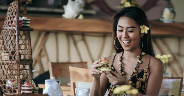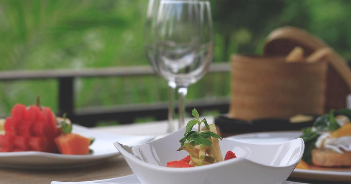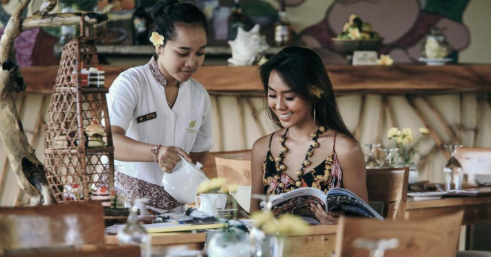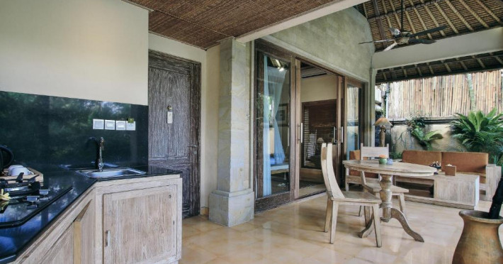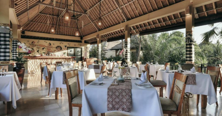 Restaurantul The Kumbuh oferă room service și o gamă de mancăruri indoneziene și occidentale.