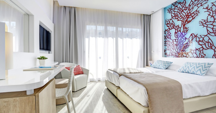 The hotel THE SEA HOTEL BY GRUPOTEL is located in the vicinity of a sandy beach. Directly next to the beach there is a promenade where you can take leisurely walks. The air-conditioned hotel is equipped with a 24h reception, a lobby bar, Wi-Fi as well as an internet corner. In the outdoor area of the property you will find a seasonally open pool, where sun loungers and sun umbrellas are available for free. Furthermore, outside you can find a sun terrace. You can store your luggage in the hotel's storage room. To clean your clothes there is a laundry service. If necessary, you can contact the medical centre. For conventions and other business meetings, the hotel offers a conference area. If you want to explore the holiday region, you can use the car rental service close to the hotel (extra fee). Due to its barrier-free facilities , such as barrier-free entrances and wheelchair accessible rooms, the hotel is also suitable for wheelchair users. Catering As catering services the hotel offers all-inclusive, half board and breakfast only. Breakfast is offered from the buffet. Lunch and dinner are also served from the buffet. Your physical well-being is catered for by a buffet restaurant with terrace. For dinner, guests are asked to wear appropriate clothing in the restaurant. Sports & Leisure Inside, a gym awaits your visit. For cyclists there is a bicycle rental as well as a storage room. Furthermore, various water sports such as windsurfing are offered in the area. A sauna awaits you in the spa. The hotel also offers massages. Let yourself be pampered in the Hamam. For the entertainment of adults shows are organized in the evening.The hotel THE SEA HOTEL BY GRUPOTEL is located in the vicinity of a sandy beach. Directly next to the beach there is a promenade where you can take leisurely walks. The air-conditioned hotel is equipped with a 24h reception, a lobby bar, Wi-Fi as well as an internet corner. In the outdoor area of the property you will find a seasonally open pool, where sun loungers and sun umbrellas are available for free. Furthermore, outside you can find a sun terrace. You can store your luggage in the hotel's storage room. To clean your clothes there is a laundry service. If necessary, you can contact the medical centre. For conventions and other business meetings, the hotel offers a conference area. If you want to explore the holiday region, you can use the car rental service close to the hotel (extra fee). Due to its barrier-free facilities , such as barrier-free entrances and wheelchair accessible rooms, the hotel is also suitable for wheelchair users. Catering As catering services the hotel offers all-inclusive, half board and breakfast only. Breakfast is offered from the buffet. Lunch and dinner are also served from the buffet. Your physical well-being is catered for by a buffet restaurant with terrace. For dinner, guests are asked to wear appropriate clothing in the restaurant. Sports & Leisure Inside, a gym awaits your visit. For cyclists there is a bicycle rental as well as a storage room. Furthermore, various water sports such as windsurfing are offered in the area. A sauna awaits you in the spa. The hotel also offers massages. Let yourself be pampered in the Hamam. For the entertainment of adults shows are organized in the evening.