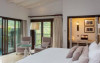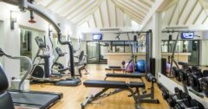 Recreational amenities at the villa include outdoor tennis courts, an outdoor pool, and a fitness center.