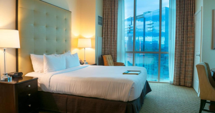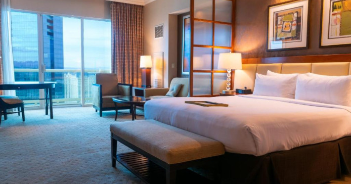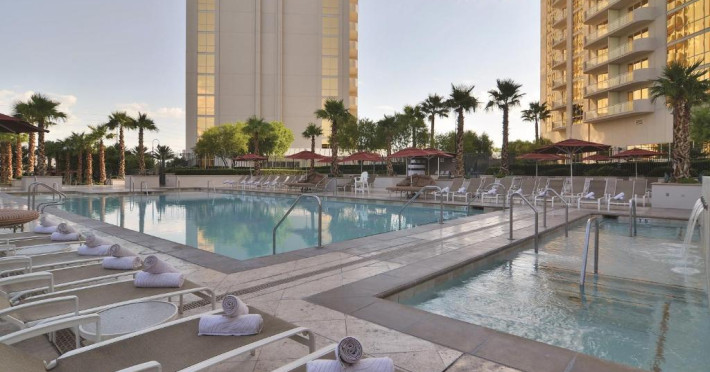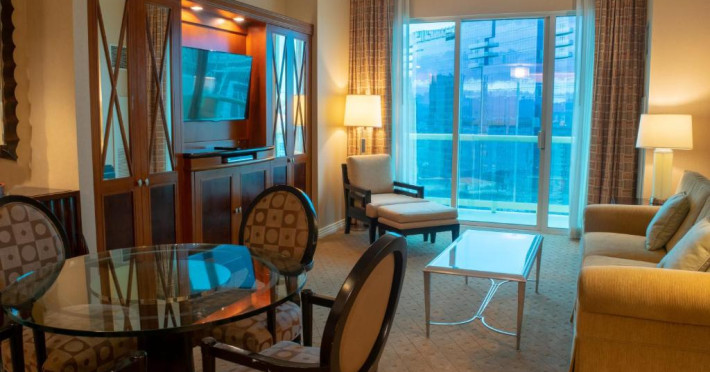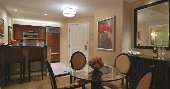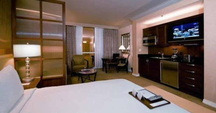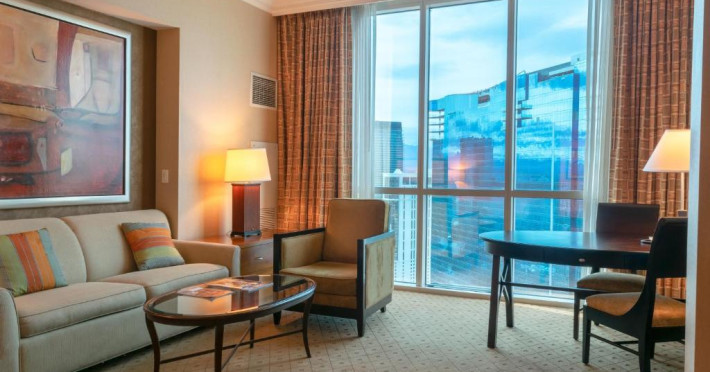 Acest hotel de lux de pe Las Vegas Strip are o piscină sezonieră in aer liber. Suitele spațioase oferă o cadă spa, televizoare cu ecran plat și un radio cu ceas iHome.