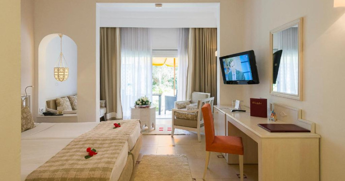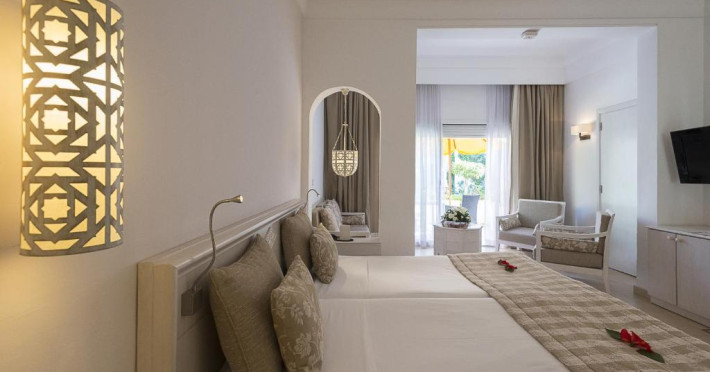 Sunt disponibile 154 camere. În camere există baie cu cadă sau duș ce are în dotare foehn și articole de toaletă gratuite. Unele camere au balcon cu vedere la mare sau la grădină. Camerele confortabile de la The Sindbad Hotel au pardoseală de gresie/ marmură, aer condiționat, Tv cu canale prin satelit și seif. Fiecare cameră dispune de minibar. Oaspeții pot solicita serviciul de room service pentru a servi masa sau diverse băuturi. Oaspeții au acces gratuit la serviciul Wi-fi în camere. Curățenia in cameră se face zilnic. Toate camerele spațioase de la The Sindbad Hotel au zonă de relaxare. Proprietatea oferă camere pentru nefumători.