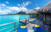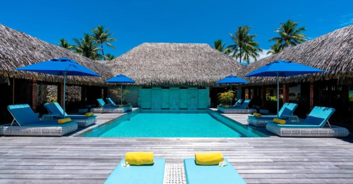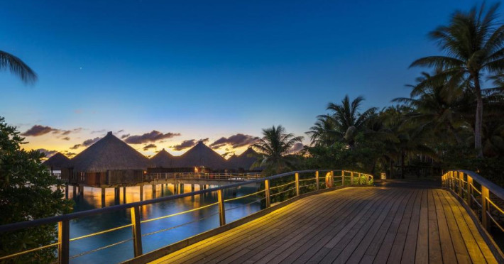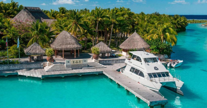 Suspendat peste apele albastre, Restaurantul Lagoon oferă preparate de fuziune din bucătăria asiatică și franceză, cu vedere la Muntele Otemanu. Barul Aparima servește mancăruri internaționale și gustări ușoare pe tot parcursul zilei, iar restaurantul Bam Boo este specializat in sushi, sizzling teppanyaki și mancăruri parfumate la wok. Far Niente asigură preparate din bucătăria italiană.
