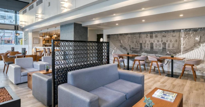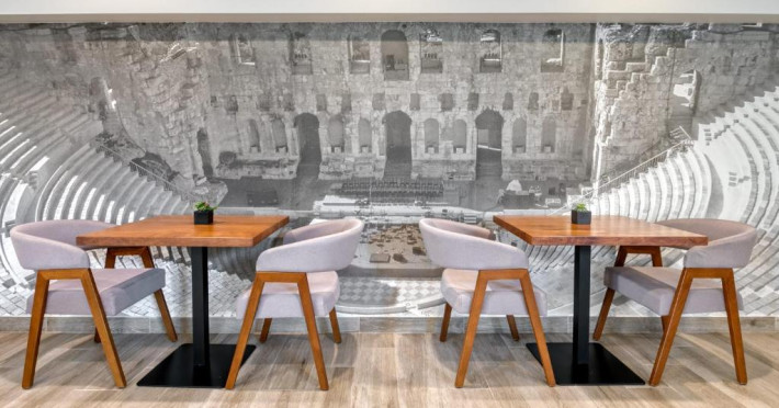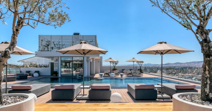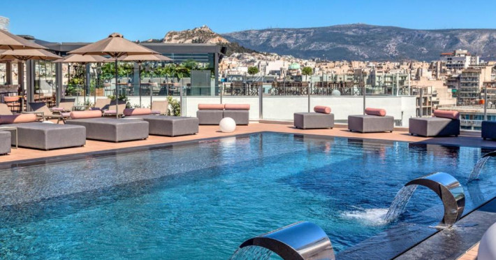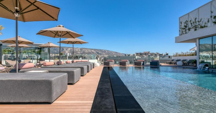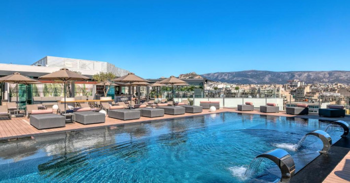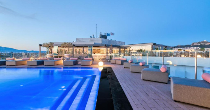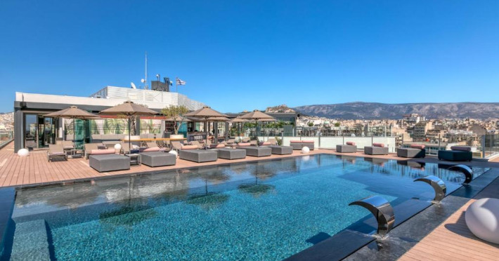Oaspeții se pot relaxa pe terasa mobilată de pe acoperiș, de langă piscină, cu vedere la Acropole. In plus, se pot bucura de un cocktail in zona de bar adiacență, care oferă o vedere panoramică de 360° la Atena.