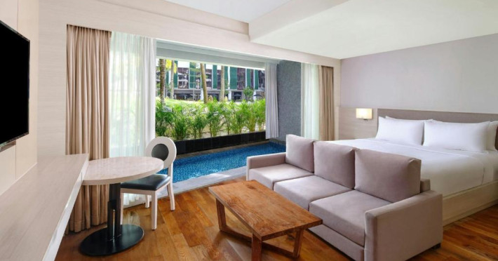 The Stones Hotel - Legian Bali, Autograph Collection este amplasat pe malul mării, in punctul sudic al plajei Legian. Acest hotel de 5 stele are o piscină mare in aer liber, cu cabane, terasă la soare și grădini verticale. Accesul la internet WiFi este disponibil gratuit in camere si in intreaga proprietate.