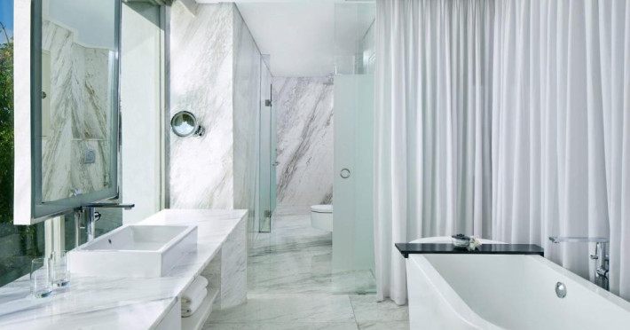 Decorate in tonuri de culori naturale, camerele au ferestre mari din podea pană in tavan, care oferă vedere la grădină sau la piscină. Fiecare cameră este dotată cu aparat espresso, iPod docking station și TV cu ecran plat. Baia privată are duș cu efect de ploaie, uscător de păr, papuci și articole de toaletă gratuite.
