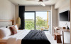 The Syntopia Hotel oferă camere mobilate simplu, cu balcon privat, cu vedere la munte sau la piscină, acces gratuit la internet wireless, TV prin satelit și frigider.