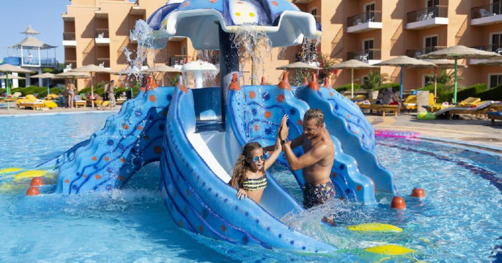 Facilitati hotel: In incinta hotelului exista 3 restaurante, printre care restaurantul principal ce organizeaza seri tematice, cu preparate din intreaga lume, restaurantul de pe plaja oferapranzuri usoare, 3 baruri, piscina in aer liber amenajata cu sezlonguri si umbrele de soare, club thematic pentru copii, teren de joaca pentru copii, internet Wi-Fi contra cost, snorkelling, tenis de masa, centru SPA, program complet de animatie pe tot parcursul saptamanii, cu o serie de activitati de divertisment si sportive.