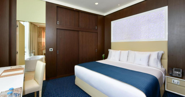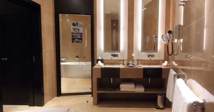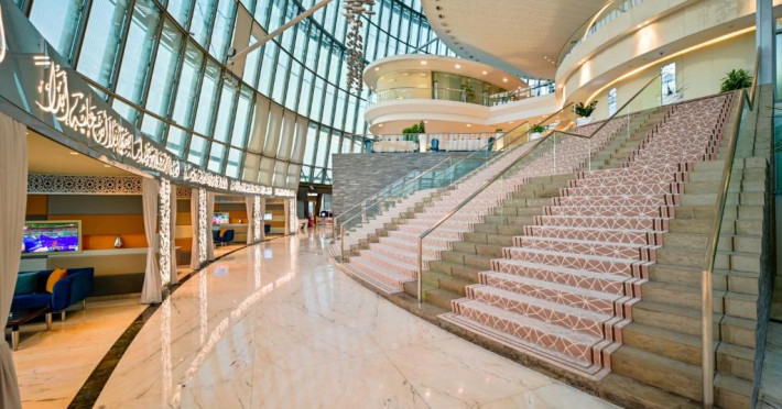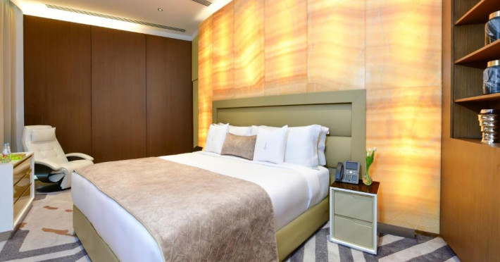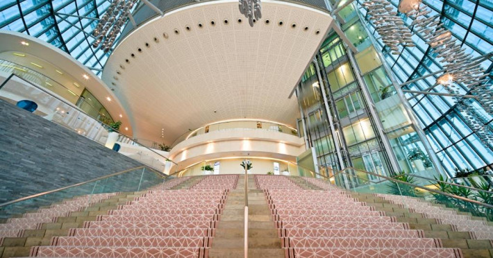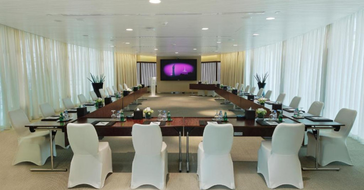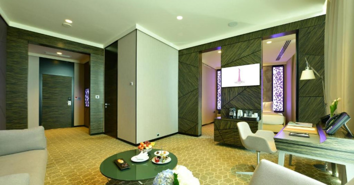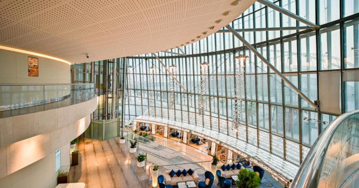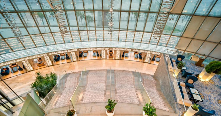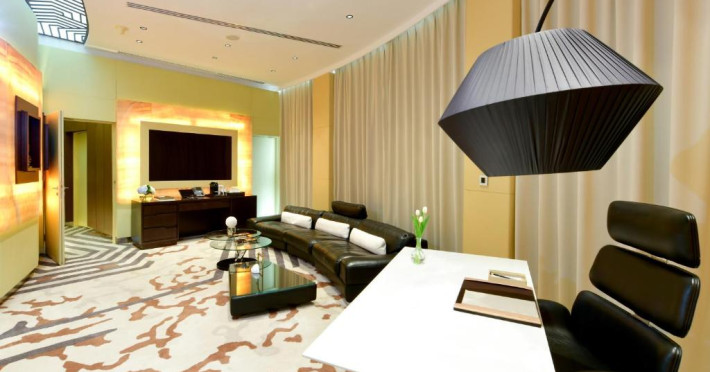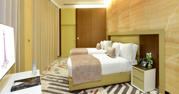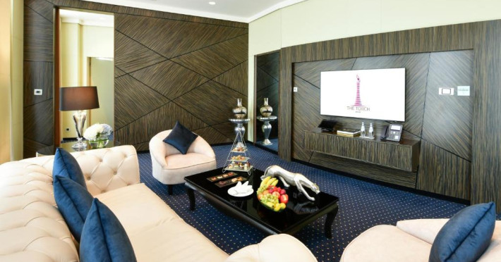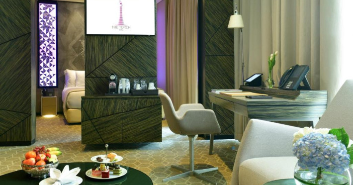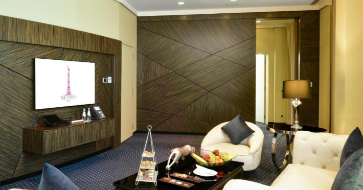 Acest hotel de design, situat intr-o clădire in formă de torță din Doha, are un restaurant rotativ și vedere panoramică la oraș. Include o piscină infinită, un club de sănătate și un salon de infrumusețare.