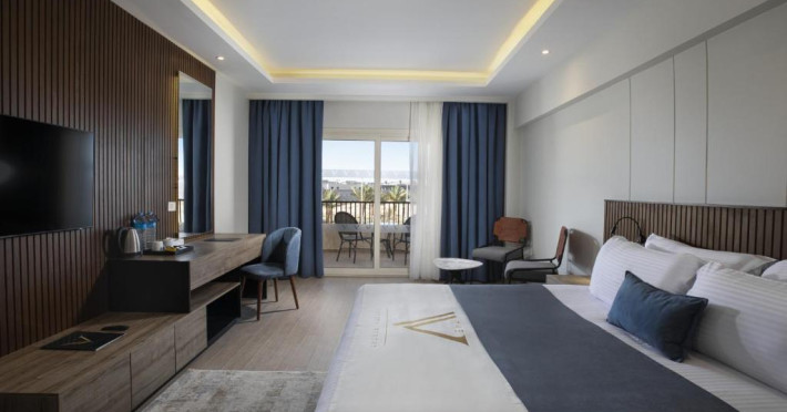The V Luxury Resort este o proprietate de 5 stele care se află în Sahl Hasheeh (Hurghada) și oferă piscină în aer liber, terasă cu șezlonguri și umbrele de soare, precum și centru spa/wellness care asigură servicii pentru un sejur extrem de relaxant. Facilitățile de la The V Luxury Resort includ și sală de fitness. Proprietatea are, de asemenea, servicii de recepție cu program non - stop și concierge. Se oferă acces gratuit la internet Wi-fi în spațiile publice.