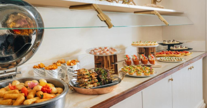 O gamă largă de opțiuni de luat masa la complex include preparate de bistro la Thomas Keller's Bouchon. De asemenea, oaspeții pot lua masa cu o varietate de preparate, inclusiv din bucătăria americană, italiană, asiatică și fusion. De asemenea, sunt disponibile mese in suite. Oaspeții de la The Venetian Resort pot experimenta o adevărată cultură a cocktailurilor la Electra sau pot face o plimbare pe căile pietruite ale Grand Canal Shoppes.