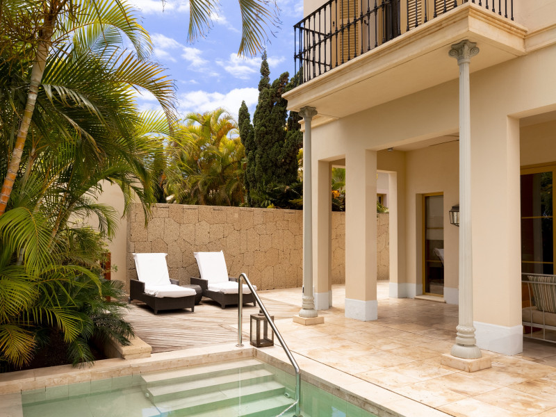 Around 300 m from a beach lies the accommodation Bahia del Duque Villas. The city centre is around 400 m away. The nearest shops you can reach within around 400 m. The hotel has a 24h reception, a shop, a hairdresser, parking spaces as well as a TV lounge. In the outdoor area of the property you will find a garden as well as a heated salt water pool (open all year), where sun loungers and sun umbrellas are available for free. There is also a children's pool. Furthermore, you can relax outdoors on the sun terrace. There is also a laundry service. If necessary, you can contact the medical centre. For conventions and other business meetings, the hotel offers a business centre as well as a conference area. If you want to explore the holiday region, you can use the car rental service close to the hotel. Pets like cats and dogs are allowed in the hotel (on request) . Due to its barrier-free facilities the hotel is also suitable for wheelchair users. Catering Breakfast is offered à la carte. Lunch and dinner are also served à la carte. For the meals, there are a restaurant (vegetarian dishes) and a bar. Distances