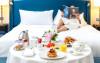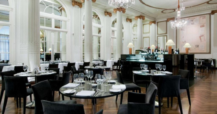 Inconjurat de coloane și candelabre frumoase, Homage Grand Salon servește ceai după amiaza și biscuiți proaspeți, precum și preparate moderne din bucătăria europeană și britanică.