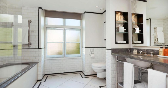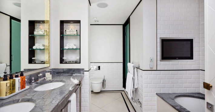 Fiecare cameră luxoasă și elegantă de la Waldorf Hilton are TV cu plasmă montată pe perete și baie privată cu duș cu efect de ploaie, articole de toaletă de lux și o chiuvetă in stil edwardian cu crom și marmură.