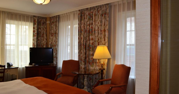 Camerele sunt decorate in stilul american timpuriu și au tavane inalte. Un frigider și un TV LCD de 32 inch cu canale prin cablu sunt, de asemenea, incluse.
