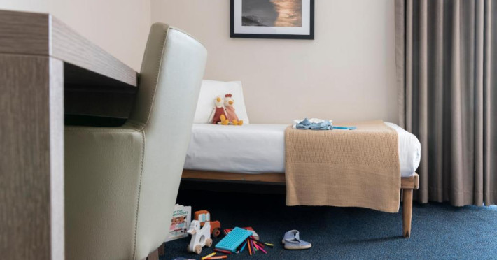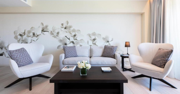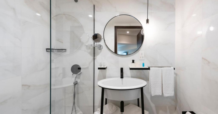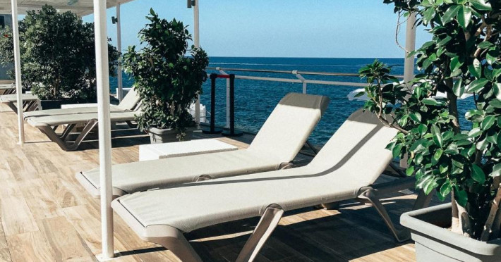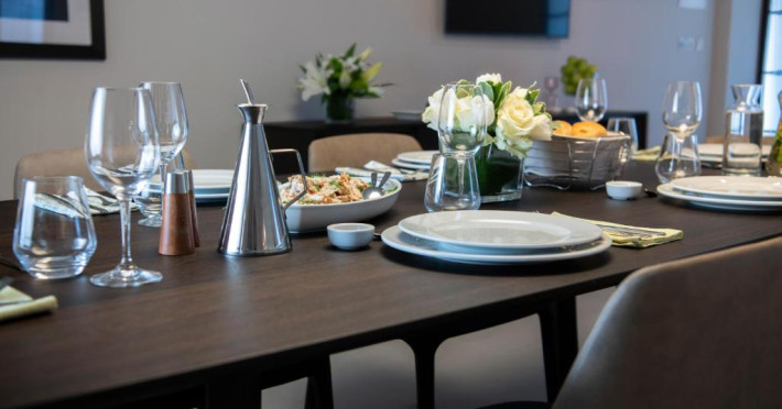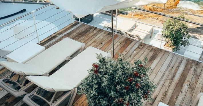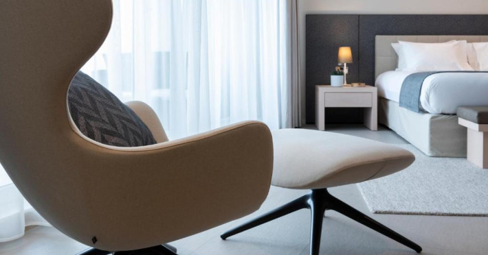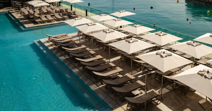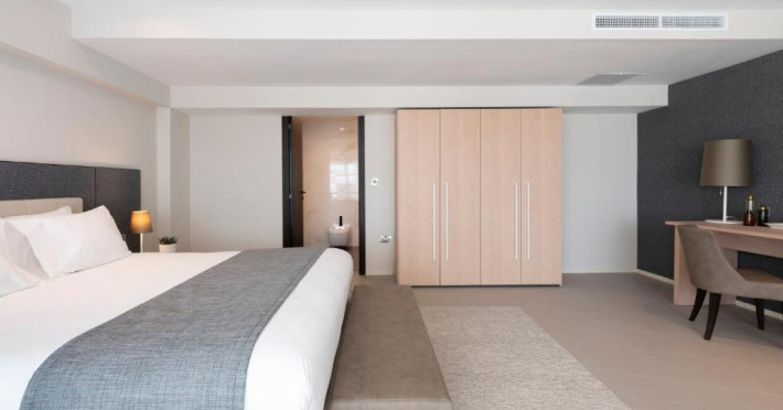 Toate camerele au aer condiționat, baie privată si balcon, majoritatea cu vedere la mare. De asemenea, fiecare unitate este dotată cu minibar, TV și seif. Hotelul Waterfront servește zilnic un mic dejun tip bufet, iar oaspeții au la dispoziție gustări ușoare/cina la barul din hol pe toată durata anului sau la 1Olive and Cielo Lounge in lunile de vară.