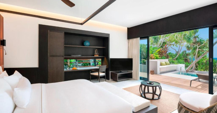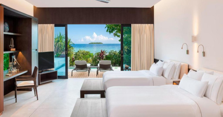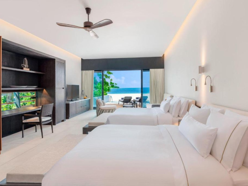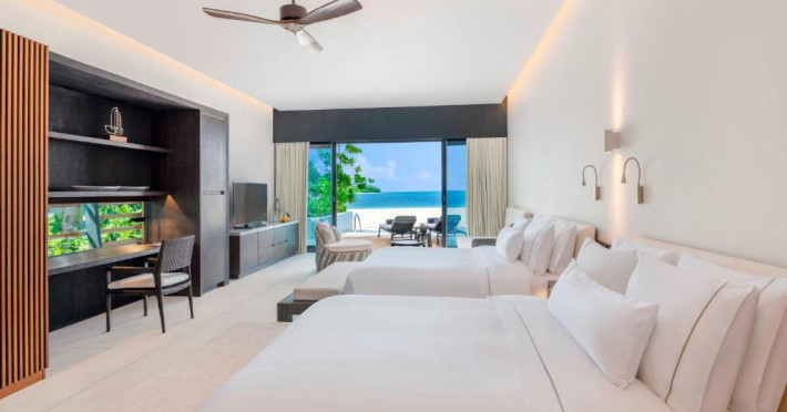 Acest complex pune la dispoziție camere cu aer condiționat, un birou, o cafetieră, un frigider, un minibar, o cutie de valori, un televizor cu ecran plat, o terasă și o baie proprie cu duș. Baia proprie oferă o cadă, articole de toaletă gratuite și un uscător de păr. La The Westin Maldives Miriandhoo Resort, camerele au lenjerie de pat și prosoape.