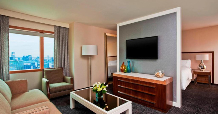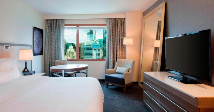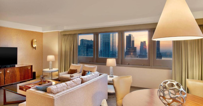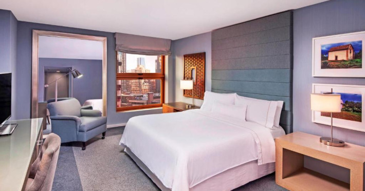 Camerele moderne ale hotelului The Westin New York din Times Square au ferestre mari și TV cu ecran plat. De asemenea, sunt incluse un iPod docking station și un aparat de cafea.
