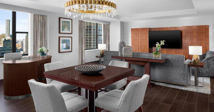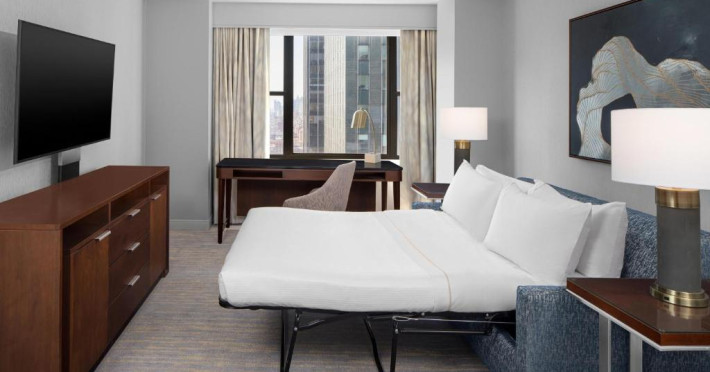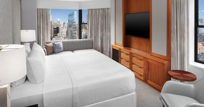 Camerele de la The Westin New York Grand Central includ un TV cu ecran plat prin cablu și un birou. Baia privată este dotată cu articole de toaletă gratuite.