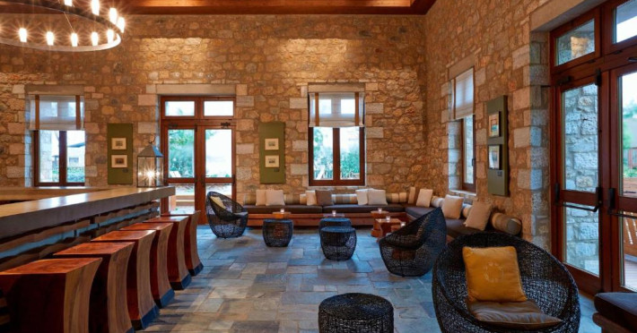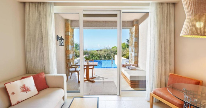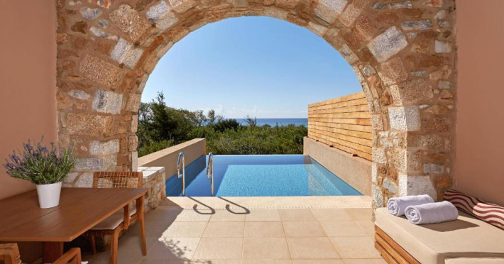 Inspirate din vechile conace din Messinia, vilele complexului sunt construite din piatră naturală și au elemente de design local, in perfectă armonie cu plajele virgine cu nisip și dealurile pitorești.