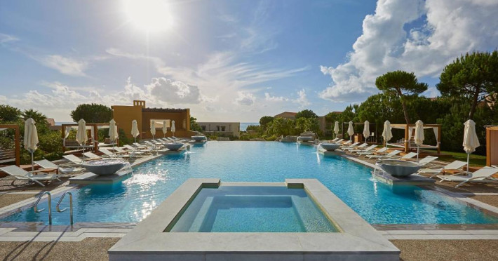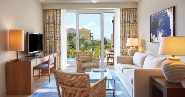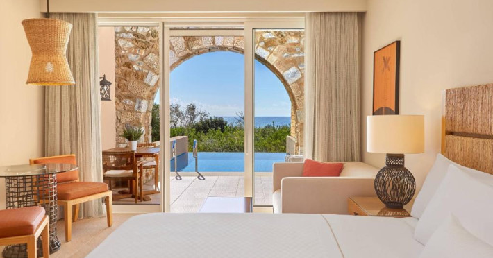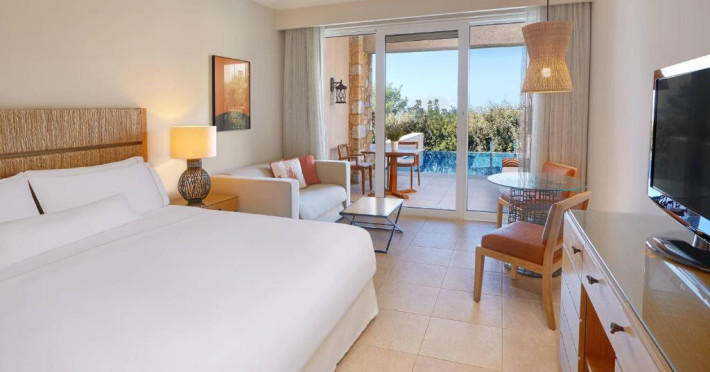 Westin Resort se află in Messinia, intr-o locație idilică pe malul mării, și oferă un centru spa de hidroterapie, un teren de golf și 123 de piscine infinite private. Pune la dispoziție camere elegante cu TV cu ecran plat.