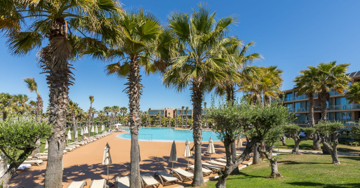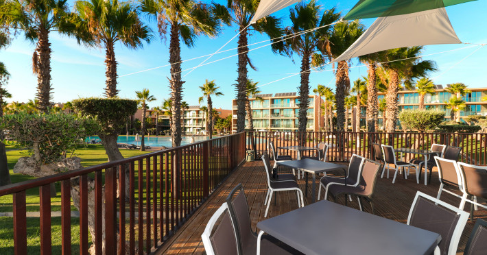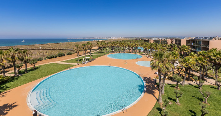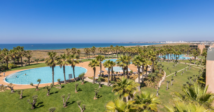 About 150 m from a beach is located the hotel The Westin Salgados Beach Resort, Algarve. The nearest shops you can reach within around 9 km. The hotel is equipped with a lobby bar, Wi-Fi, internet access, a hairdresser, a jacuzzi, showers and changing rooms as well as parking spaces (limited and for a fee). Outside there are 2 children`s pools. Furthermore, you can relax outdoors on the roof terrace and in the garden. For conventions and other business meetings, the hotel offers a business centre. Pets like cats and dogs up to 10 kg are allowed in the hotel (for a fee). Distances