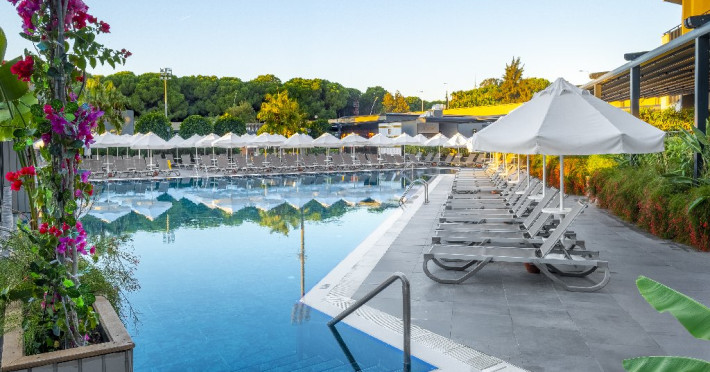 Hotelul se afla in statiunea Belek, la 28 de km de Aeroportul Antalya.