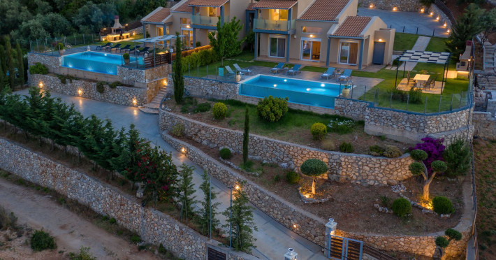 Ionian heaven property is a newly built complex of 2 luxury pool villas located in nikiana, one of the most picturesque places in lefkadas island. the 2 houses of 110 m^2each, abstain only 15 mins from the city of lefkada and 8 mins from nidry area. the villas in combination with the breathtaking infinity pool view of ionian waters ensure a one of a kind holiday experience for their elite guests.