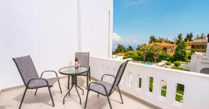 Cel mai apropiat aeroport este Aeroportul Salonic, situat la o distanță de 69 km. La cerere proprietatea organizează transfer la/de la aeroport.