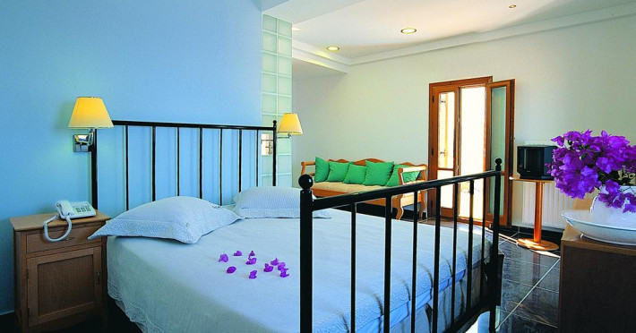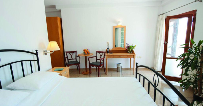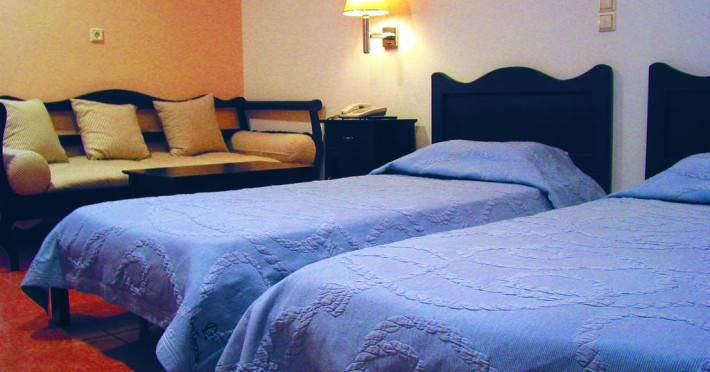 Sunt disponibile 9 camere. În camere există baie cu duș. Camerele de la Theoxenia au în dotare aer condiționat și Tv. Oaspeții au la dispoziție serviciul de room service pentru a servi masa sau diverse băuturi. Unele camere au balcon cu vedere la mare, unde oaspeții pot admira apusul sau răsăritul soarelui. Oaspeții au acces gratuit la serviciul Wi-fi în camere. Curățenia in cameră se face zilnic.