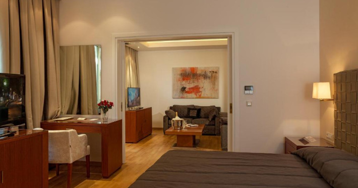 Oferind vedere la Atena și la grădină, fiecare suită de la Theoxenia Residence include un TV cu ecran plat cu canale prin satelit. Băile de marmură sunt dotate cu o cadă, iar articolele de toaletă gratuite sunt, de asemenea, oferite. Aerul condiționat este dotat standard.