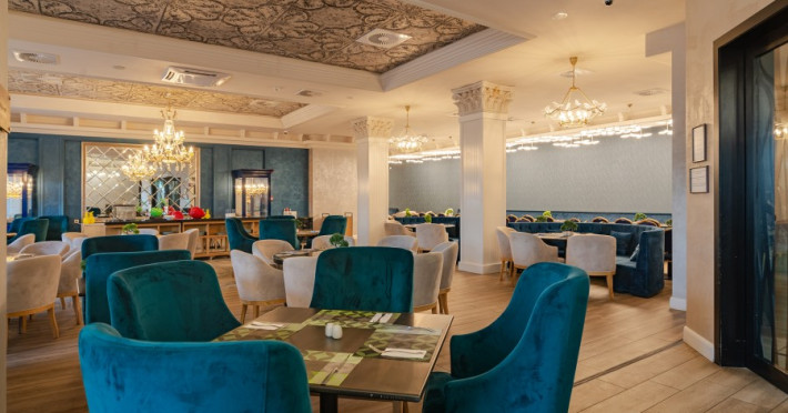 Hotelul pune la dispozitie oaspetilor lobby, receptie,lobby bar, sky bar, ceainarie, un restaurant Italian si unul rusesc, un centru de reabilitare, sala de fitness, sala de yoga,club de bowling, club de biliard,sala de conferinte, piscina interioara si piscina exterioara cu apa minerala.