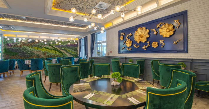 Hotelul pune la dispozitie oaspetilor lobby, receptie,lobby bar, sky bar, ceainarie, un restaurant Italian si unul rusesc, un centru de reabilitare, sala de fitness, sala de yoga,club de bowling, club de biliard,sala de conferinte, piscina interioara si piscina exterioara cu apa minerala.