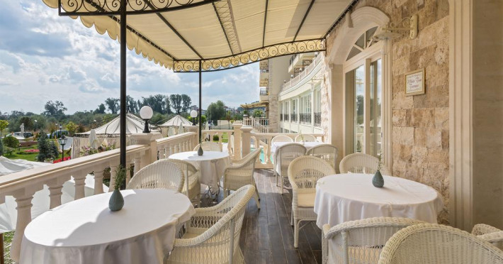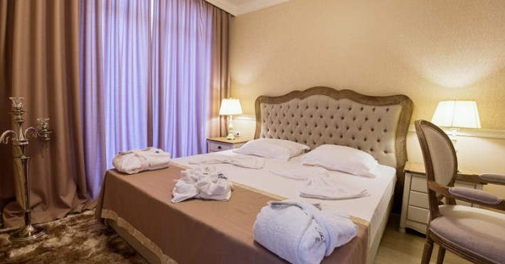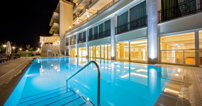 Această proprietate de 5 stele se află în Kranevo, la o distanță de 300 m de plaja Kranevo și oferă piscină înterioară, piscină în aer liber cu terasă și umbrele de soare, precum și o zonă de plajă privată cu șezlonguri și umbrele de soare. Facilitățile de la Therma Palace includ și sală de fitness. Proprietatea are, de asemenea, servicii de recepție cu program non - stop și închirieri auto. Se oferă acces gratuit la internet Wi-fi în spațiile publice. Parcarea este disponibilă la proprietate gratuit.