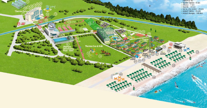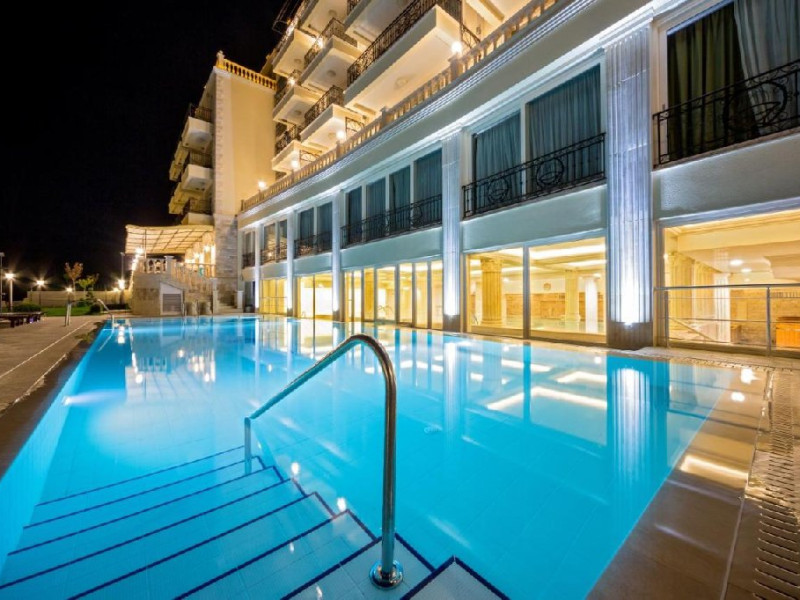 Localizare: Therma Palace este un hotel cu design unic, situat in Kranevo.Facilitati hotel: Hotelul pune la dispozitia clientilor piscina exterioara, restaurant, bar, teren de tenis (contra cost), teren de volei, sauna, piscina interiolara.