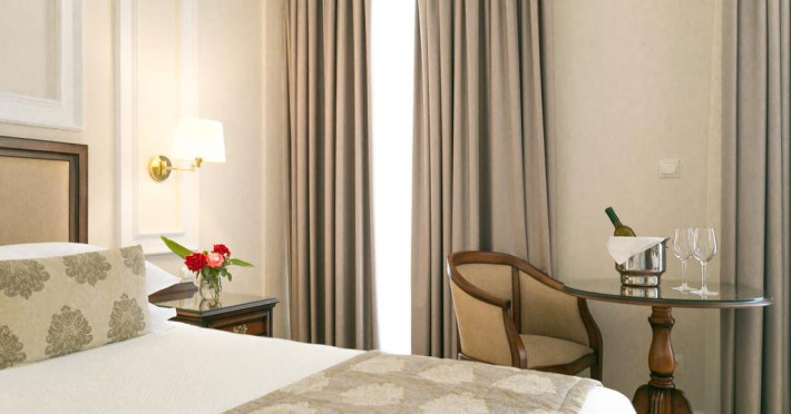 Sunt disponibile 108 camere. Camerele au balcon cu masă și scaune unde pot fi petrecute momente de relaxare. Camerele de la Thermae Sylla Spa Welness Hotel sunt dotate cu aer condiționat, Tv cu canale prin satelit și seif. În camere există baie cu cadă sau duș, foehn, articole de toaletă gratuite, precum și halate de baie și papuci. Fiecare cameră dispune de minibar. Oaspeții pot solicita serviciul de room service pentru a servi masa sau diverse băuturi. Curățenia in cameră se face zilnic. Toate camerele spațioase de la Thermae Sylla Spa Welness Hotel au zonă de relaxare.