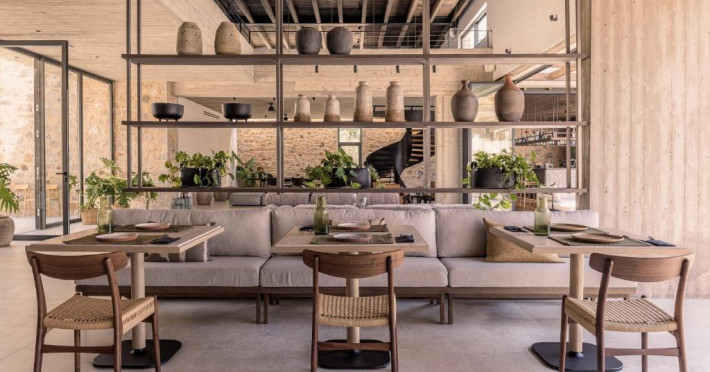Oaspeții pot savura un mic dejun tip bufet, continental sau englezesc/irlandez complet. La Theros All Suite Hotel - Adults Only veți găsi un restaurant care servește mancăruri din bucătăria grecească și mediteraneană. La cerere, sunt disponibile și preparate vegetariene, vegane și fără gluten.