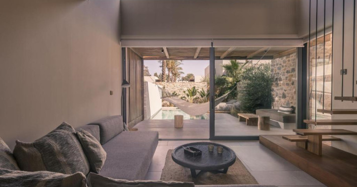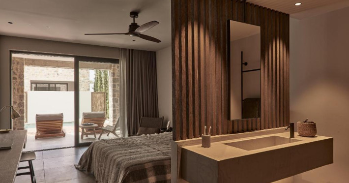Acest hotel pune la dispoziția oaspeților camere cu aer condiționat, birou, cafetieră, un minibar, cutie de valori, televizor cu ecran plat, patio și baie proprie cu duș. Baia proprie oferă articole de toaletă gratuite. La Theros All Suite Hotel - Adults Only, fiecare cameră include lenjerie de pat și prosoape.