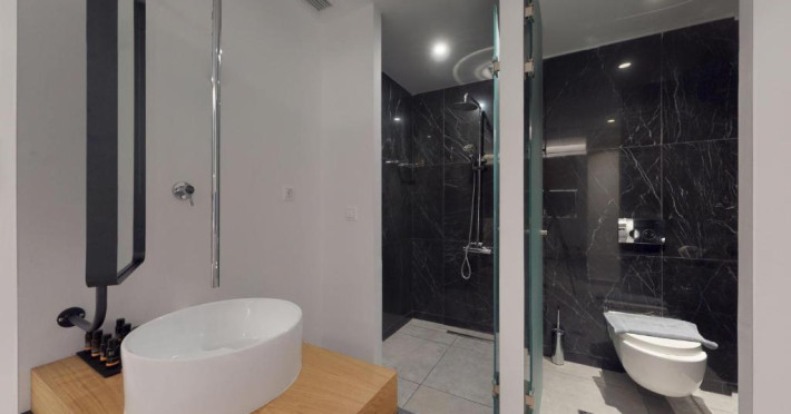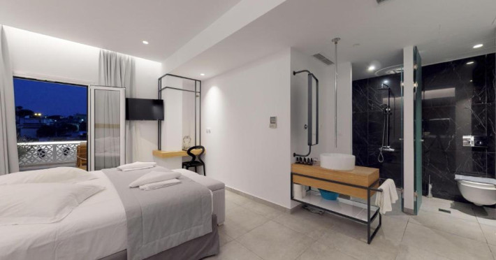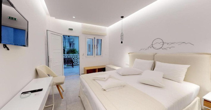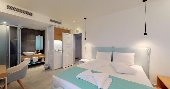 Camerele de la Theros Studios au în dotare aer condiționat și Tv. În camere există baie cu cadă sau duș prevăzută cu foehn. Curățenia in cameră se face zilnic.