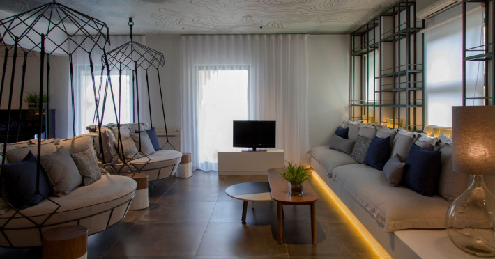 It is a certified 4 star boutique hotel that has built in the architectural style of Ionian islands. Its total renovation completed in 2019 and as a consequence, a new era has begun marking the touristic map of the area with a conceptual boutique hotel. All the areas of hotel, have been designed and have been renovated, based on visitor’s upgraded experience, with tools the global leadership of design and the maximum functionality for a luxurious stay. In 2023 a roof suite was created too. Every of each room has its own design concept that provides a unique design experience even for the most suspicious visitor following the most current trends customized in magnificent landscape of the island and the experience of Greek summer destination.