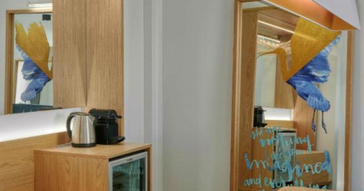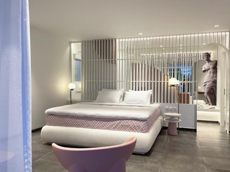 Relax in the garden, refresh at the aqua gym & spa, or enjoy modern Greek cuisine at the a la carte restaurant. Each room features unique design and high-end amenities for an unforgettable stay.