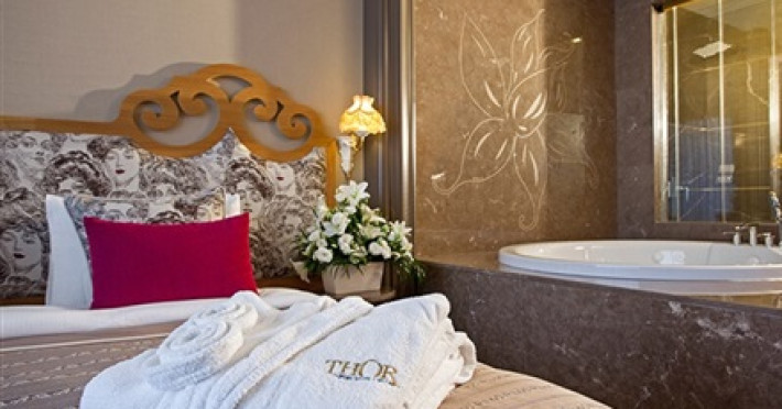 Sunt disponibile 187 camere. Camerele confortabile de la Thor By Alkoclar Exclusive au pardoseală de gresie/ marmură, aer condiționat, Tv cu canale prin satelit și seif. Unele camere au balcon cu vedere la mare, unde oaspeții pot admira apusul sau răsăritul soarelui. Un minibar și o mașină pentru preparare cafea sau ceai se află în fiecare cameră. Oaspeții pot solicita serviciul de room service pentru a servi masa sau diverse băuturi. În camere există baie cu cadă sau duș, foehn, articole de toaletă gratuite, precum și halate de baie și papuci. Oaspeții au acces gratuit la serviciul Wi-fi în camere. Curățenia in cameră se face zilnic.