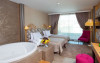 TV LCD, aer conditionat, minibar, seif, balcon.