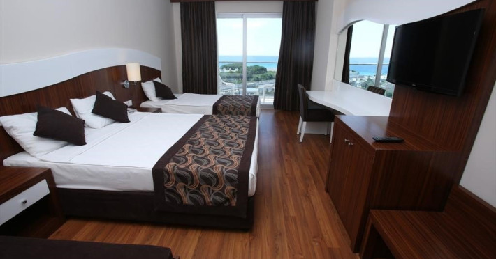 Oferă oaspeților confort și comoditate prin conceptului ultra all-inclusive cu un bufet bogat, camere de un alb imaculat și personal prietenos. Throne Beach Resort & Spa se află pe malul mării, avand propria plajă de nisip cu steag albastru.Datorita dinamicitatii domeniului disponibilitatea ofertelor se modifica de la un moment la altul. De aceea ofertele sunt valabile in limita locurilor disponibile. Agentia nu este responsabila pentru eventualele neconcordante care pot aparea intre informatiile privind tarifele si alte detalii din site si informatiile primite in agentie. In aceste cazuri vor avea prioritate, intotdeauna, informatiile primite in agentie.