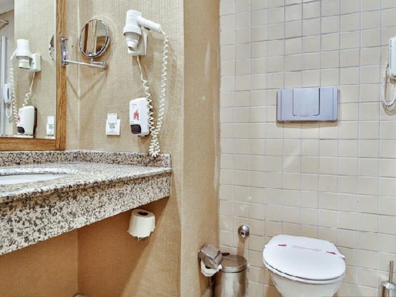 Facilitati camere: Hotelul are 235 de camere, dispuse pe 4 etaje, impartite in camere standard (max. 3 persoane in 22 mp) si camera large ( max. 4 persoane in 28 mp). Toate camerele sunt dotate cu balcon, minibar, aer conditionat, baie cu dus, uscator de par, LCD TV cu transmisiune prin satelit, wifi, telefon, seif.