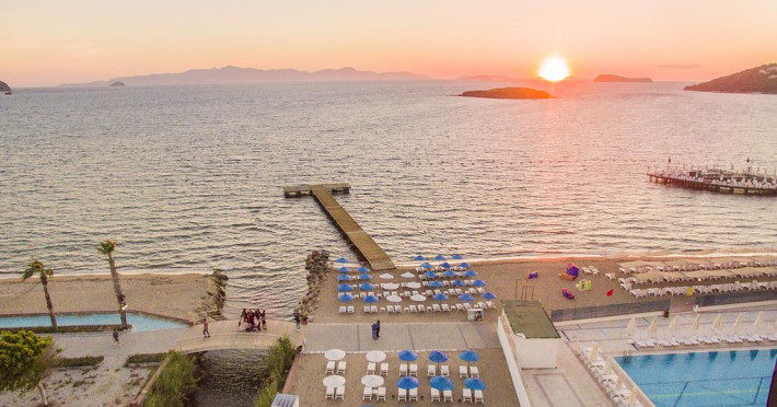 Hotelul este situat pe malul marii, la 58 km de aeroportul Milas Bodrum si la 18 km de orasul Bodrum, la 3 km de localitatea Turgutreis. Hotelul a fost construit in anul 2002, iar mai apoi renovat in 2007, avand o suprafata totala de 5000 mp.