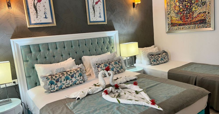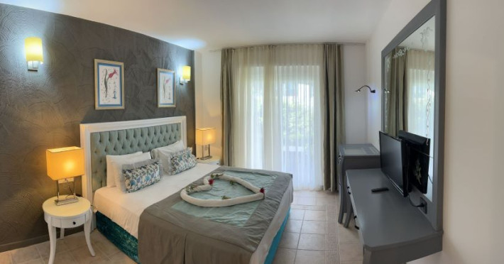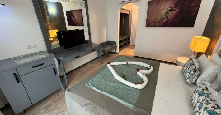 Localizare Amplasată în Bodrum, Tiana Beach Resort este o proprietate de 3 stele care oferă plajă privată și piscină exterioară cu șezlonguri și umbrele de soare Facilitati hotel La Tiana Beach Resort oaspeții au la dispoziție un restaurant care servește mâncare în stil bufet. Bucătăria turcească de la Tiana Beach Resort propune preparate delicioase care satisfac gusturi diverse. Masa poate fi servită atât în interior, cît si în aer liber, pe terasă, în funcție de vreme. Oaspeţii pot avea diverse băuturi răcoritoare sau alcoolice la bar. În cadrul proprietății există și un snack bar care servește băuturi și gustări.Din facilitățile oferite de proprietate nu lipsesc cele spa, unde oaspeții se pot relaxa la masaj sau la saună. În cadrul proprietatății există piscină în aer liber pentru cei care doresc să se relaxeze și să se bronzeze. Aceasta este prevăzută cu șezlonguri confortabile, prosoape și umbrele de soare, precum și cu un bar unde oaspeții pot degusta băuturi alcoolice sau răcoritoare. Facilitati camera Unele camere au balcon cu vedere la mare sau la grădină. Camerele confortabile de la Tiana Beach Resort au pardoseală de gresie/ marmură, aer condiționat, Tv cu canale prin satelit și seif. Fiecare cameră dispune de minibar. În camere există baie cu cadă sau duș ce are în dotare foehn și articole de toaletă gratuite. Curățenia in cameră se face zilnic.Info