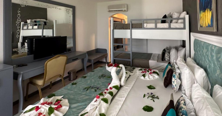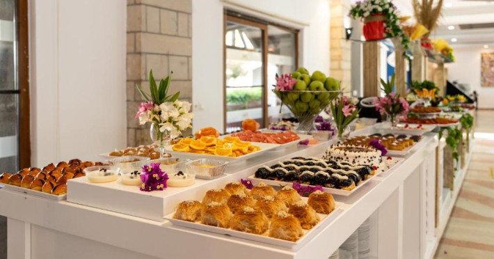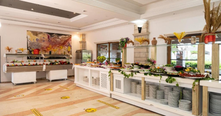 La complexul all-inclusive Tiana Beach, vă puteți bucura de un restaurant tip bufet rafinat pentru mese pe tot parcursul zilei, gustări răcoritoare și baruri cu băuturi.