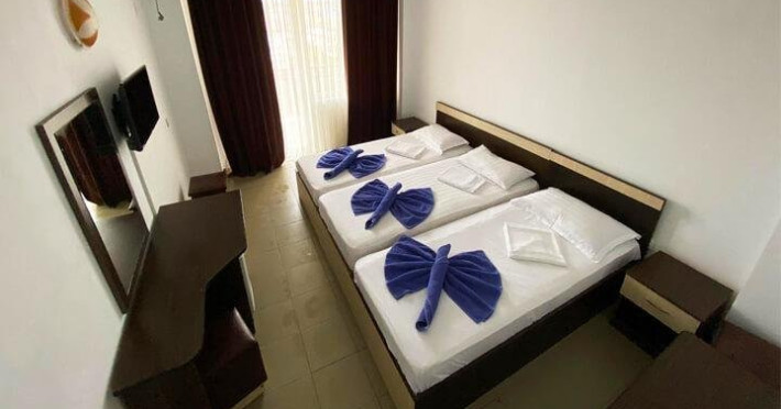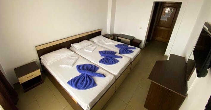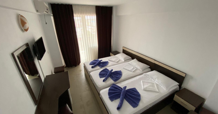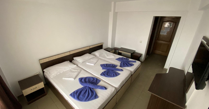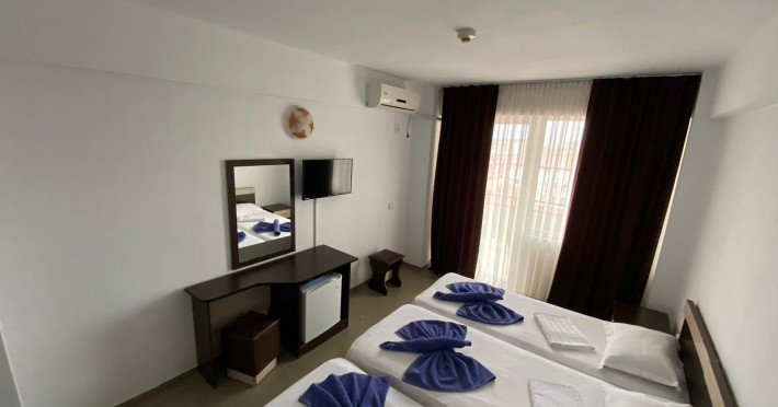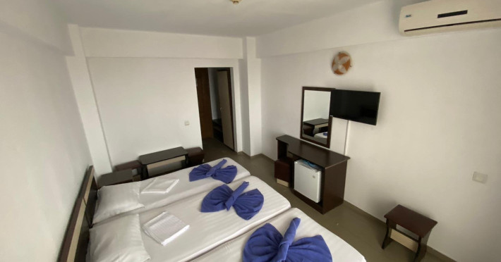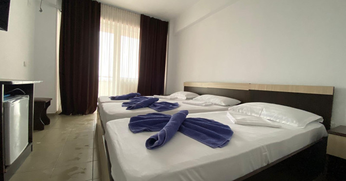 Tiberius Residence *** Costinesti este amplasat in zona de nord a localitatii Costinesti, la circa 80 m de plaja, in cartierul rezidential si la doar 5 minute de mers pe faleza, pana in centrul statiunii. Hotelul este inconjurat numai de case de vacanta si moteluri, zona fiind departe de zgomotul statiunii, iar turistii pot beneficia aici de linistea si confortul de acasa. Camerele din Tiberius Residence sunt extrem de spatioase si dispun de dotari care sa ii faca pe clienti sa petreaca aici clipe de neuitat, beneficiind de conditii modernizate la standarde inalte. De asemenea, toate camerele sunt dotate cu bai proprii cu dus, aer conditionat, TV/cablu, minibar. Tiberius Residences dispune si de un restaurant cu linie de autoservire cu terasa cu o capacitate de 150 de locuri unde va puteti delecta cu cele mai proaspete si delicioase preparate culinare, gatite de un personal specializat.Datorita dinamicitatii domeniului disponibilitatea ofertelor se modifica de la un moment la altul. De aceea ofertele sunt valabile in limita locurilor disponibile. Agentia nu este responsabila pentru eventualele neconcordante care pot aparea intre informatiile privind tarifele si alte detalii din site si informatiile primite in agentie. In aceste cazuri vor avea prioritate, intotdeauna, informatiile primite in agentie.